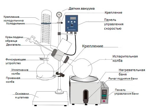Функция: Обеспечивает непрерывное вращение колбы, что увеличивает площадь испарения за счет образования тонкой пленки жидкости на стенках.